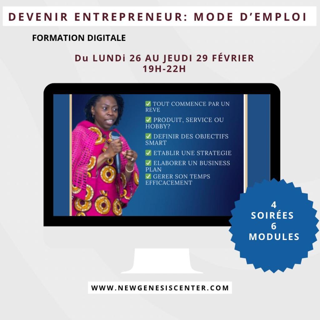 Voir un CEO dans un film vous fait vibrer? Vous avez toujours rêvé de devenir un chef d’entreprise accompli et d’être à la tête de votre propre entreprise? Vous voulez lancer votre entreprise? Mais vous ne savez pas trop comment faire, alors cette formation a été spécialement conçue pour VOUS. Elle sera donnée du 26 au 29 février inclus de 19:00 à 22:00 (heure de Paris). Elle est composée de six modules: