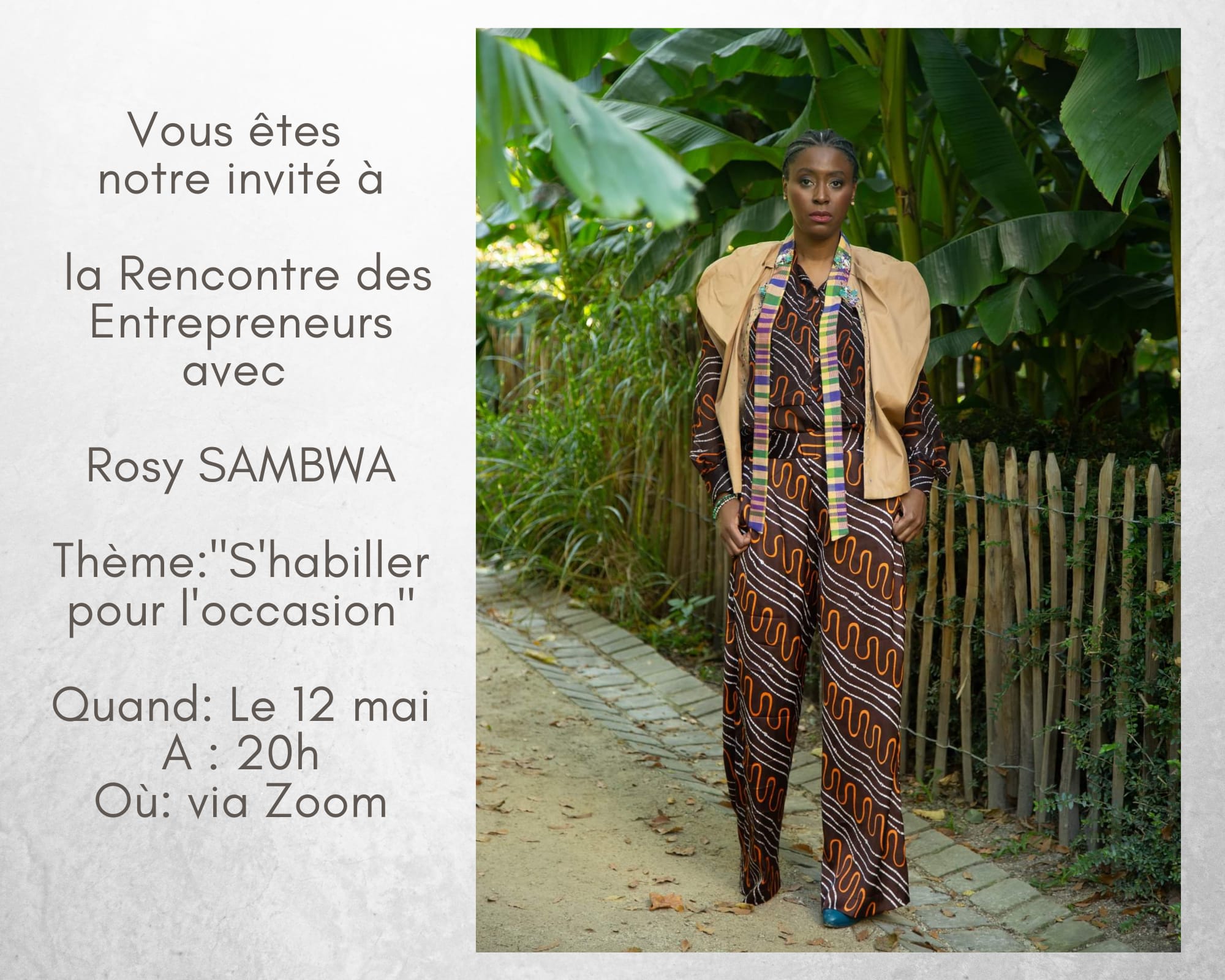 Je recevrai Rosy SAMBWA, lors de la rencontre des entrepreneurs qui a pour thème : « S’habiller pour l’occasion », ce jeudi 12 mai 2022. Elle nous éclairera et nous parlera des codes vestimentaires à adopter dans le monde des affaires.